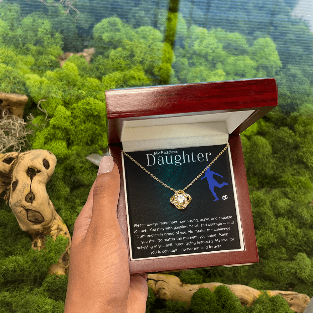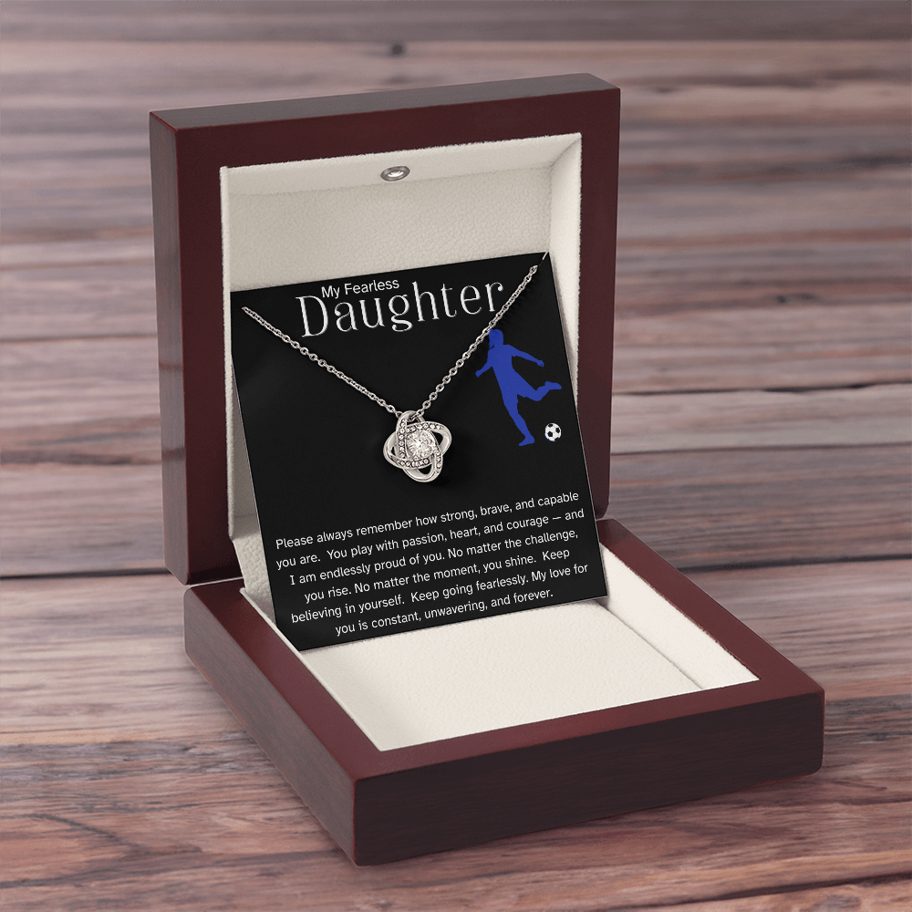 Fearless Soccer Daughter Necklace – Inspirational Sports Gift for Daughter | Love Knot Necklace