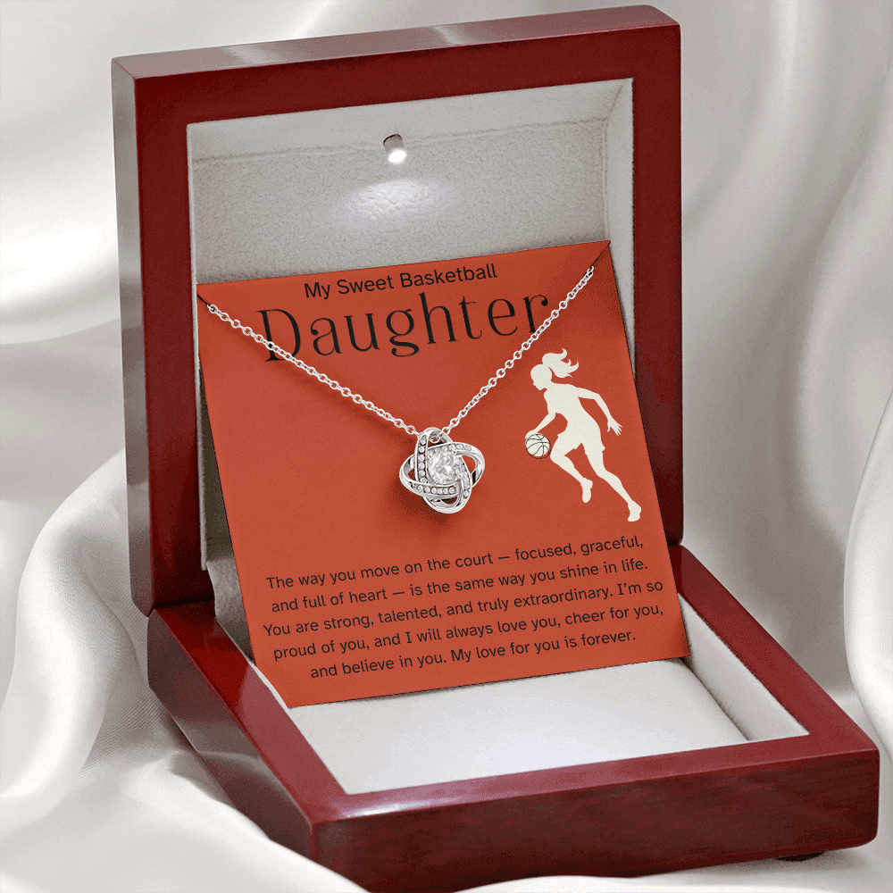 Sweet Basketball Daughter Necklace – Heartfelt Sports Gift for Her | Love Knot Necklace