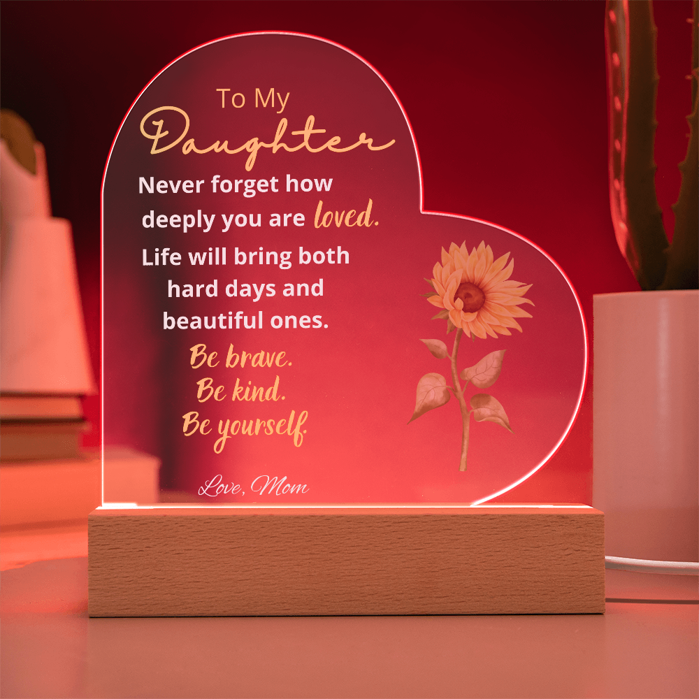 This beautiful heart-shaped acrylic plaque is a lasting reminder of love, strength, and reassurance — a message your daughter can see every day and carry with her through every season of life.