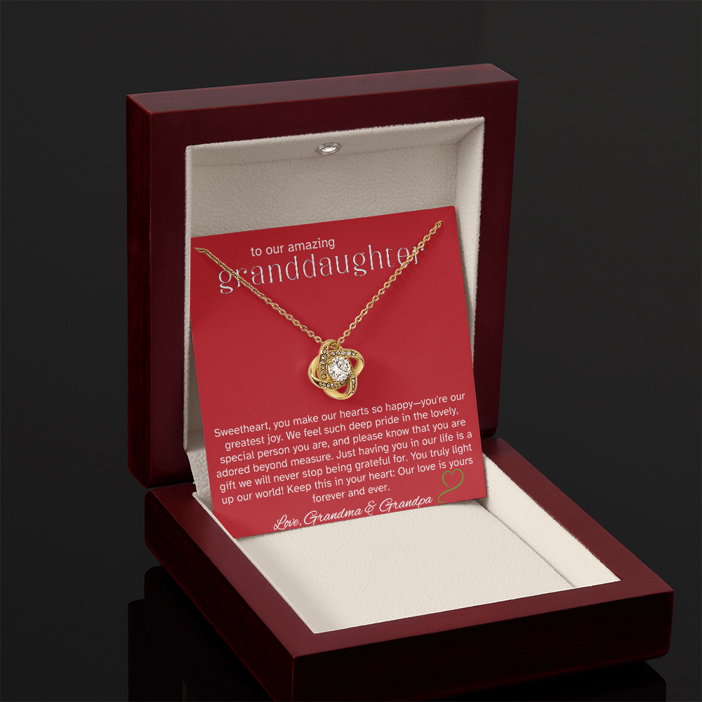 To Our Amazing Granddaughter – Message Card From Grandma & Grandpa | Heartfelt Granddaughter Gift | Forever Loved Keepsake | Love Knot Necklace